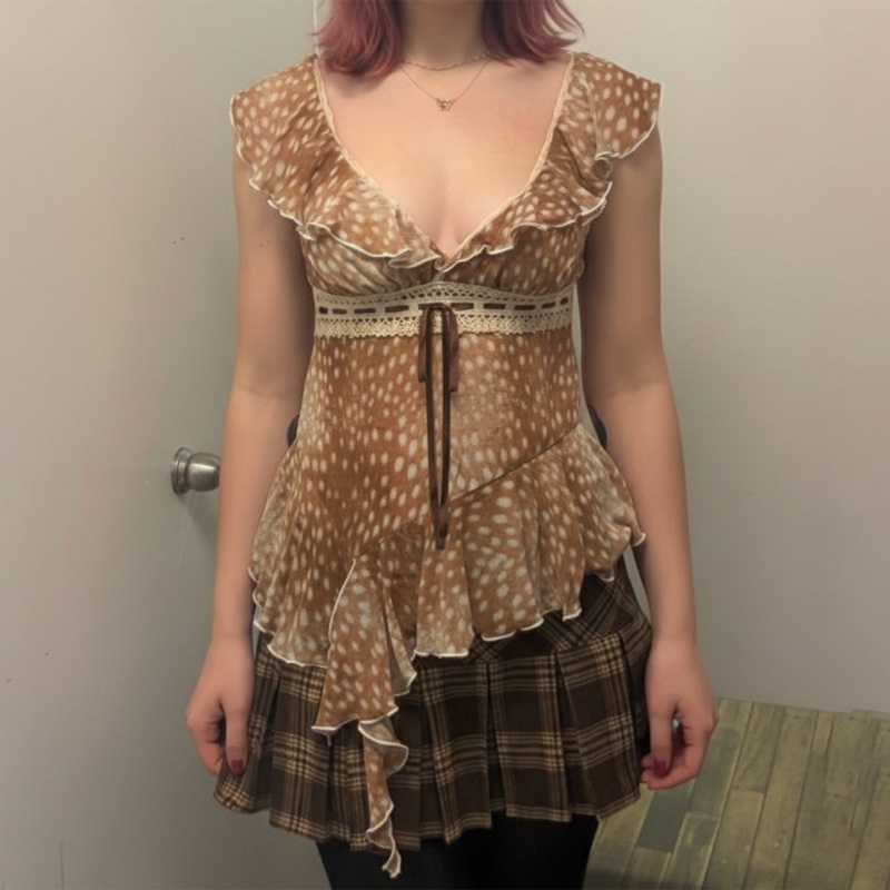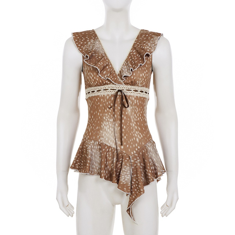 Plunging Ruffle Asymmetric Blouse